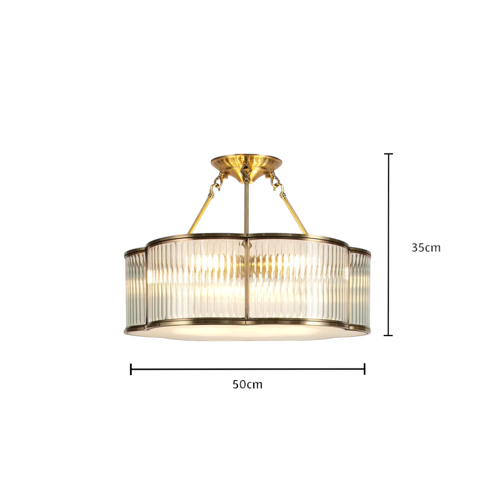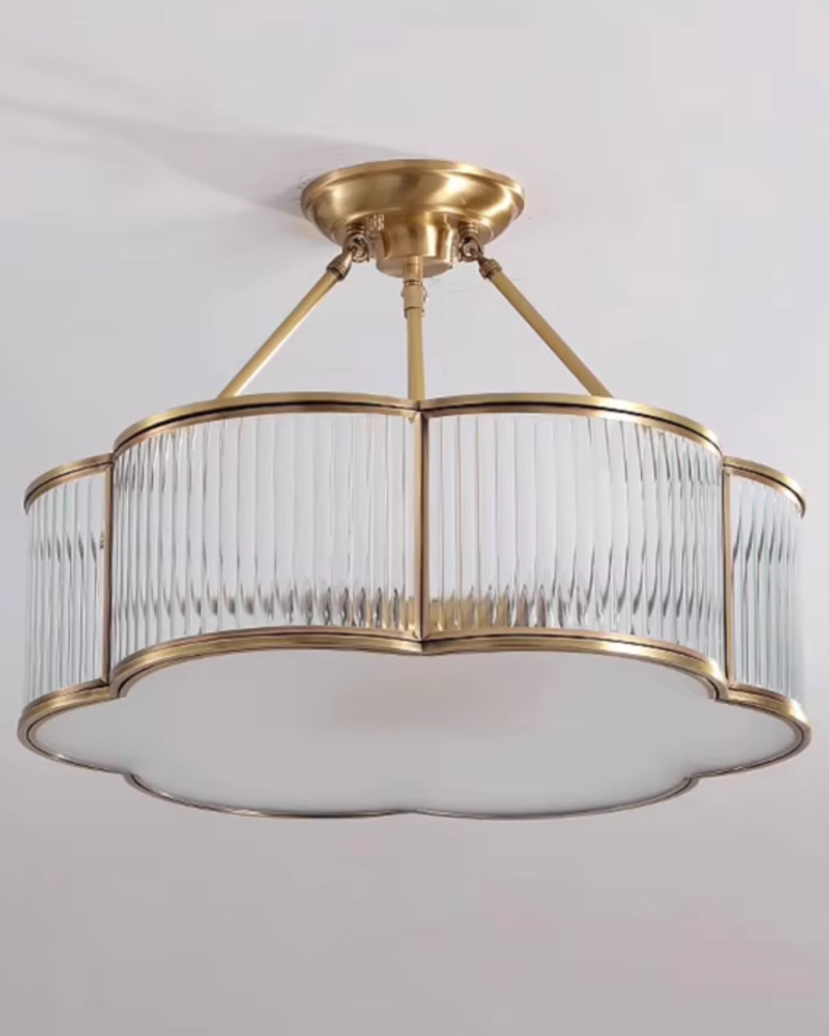 Forvandl din bolig med den luksuriøse glød fra Le Lustre Éclatant. Denne statement-loftslampe er omhyggeligt udformet til at kombinere moderne raffinement med tidløs elegance og er designet til at imponere og løfte stemningen i ethvert rum. Le Lustre Éclatant har en karakteristisk firkløver-silhuet og indfanger essensen af raffineret håndværk. De klare, riflede glaspaneler omkranser elegant lampen og bryder lyset for at skabe et blændende spil af skygger og højdepunkter. Med detaljer i førsteklasses messing udstråler lampen en varm, indbydende glød, der beriger din indretning.