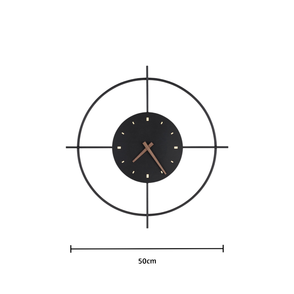 Die Axis Temps Clock ist ein kühnes Statement, das zeitgenössisches Design mit geometrischer Präzision verbindet. Ihr offener Rahmen, der durch sich kreuzende Linien definiert ist, zieht die Blicke auf sich und vermittelt ein Gefühl von Ausgewogenheit und Symmetrie. Das zentrale Zifferblatt mit seinen schlanken Indexen und eleganten Holzzeigern bietet eine raffinierte und moderne Ästhetik.
