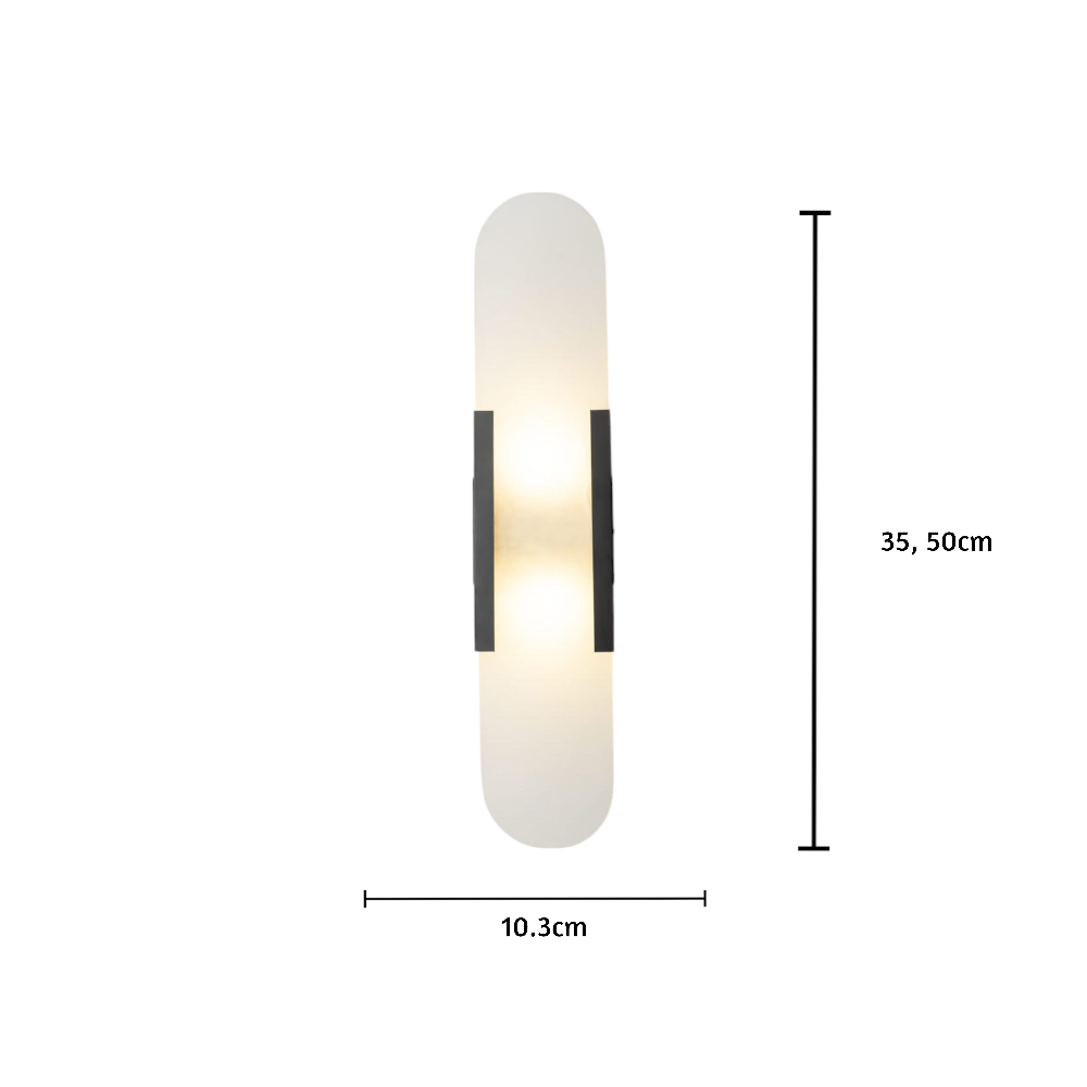 Bringen Sie eine Aura moderner Eleganz in Ihren Raum mit La Lumière Écliptique, einer raffinierten Wandleuchte, die durch ihre schlichte, architektonische Form besticht. Die längliche Silhouette und der Diffusor aus mattiertem Glas verbreiten ein sanftes Licht, das eine einladende und ruhige Atmosphäre schafft. Ihr Design verkörpert zeitgenössischen Luxus, indem es subtile Kurven mit kühnen geometrischen Akzenten zu einer auffälligen, aber unaufdringlichen Präsenz verbindet.