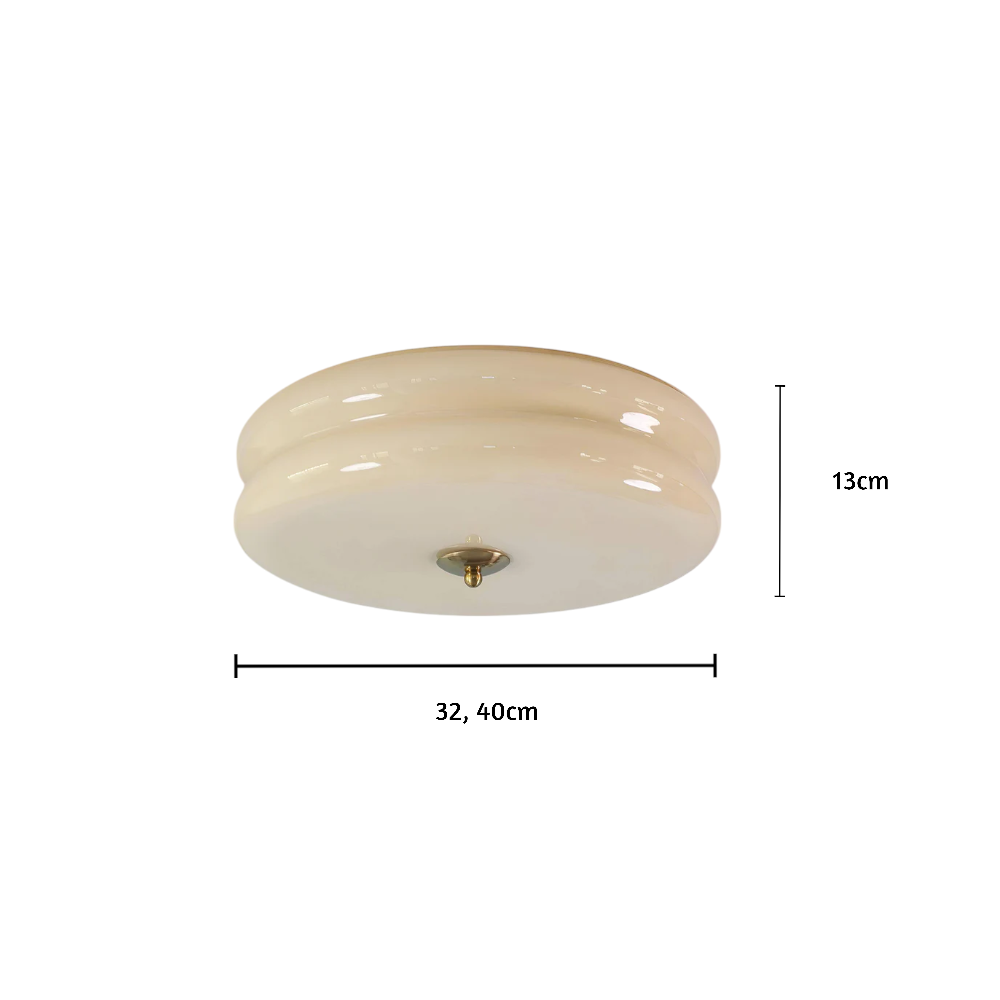 Eine atemberaubende, vom Vintage-Stil inspirierte Deckenleuchte, La Lumière Époque verbindet zeitlose Eleganz mit moderner Funktionalität. Ihr glattes, abgerundetes Design in einem sanften Beigeton strahlt ein warmes, einladendes Licht aus, das perfekt ist, um in jedem Raum ein gemütliches Ambiente zu schaffen. Die Leuchte mit Art-Déco-Einfluss verfügt über einen eleganten Chrom-Mittelteil, der ihr einen Hauch von Raffinesse verleiht.