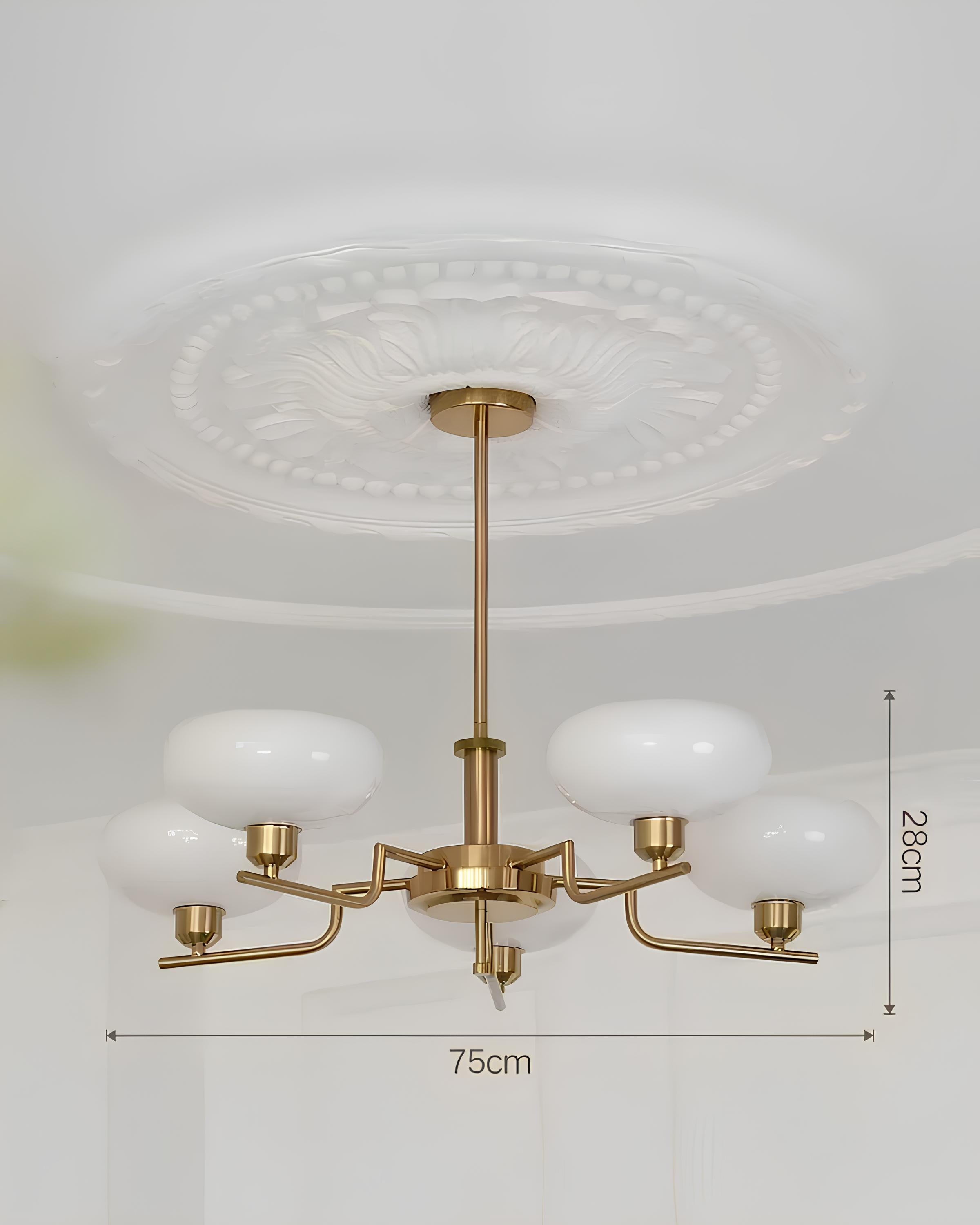 Eleganter Designer-Deckenleuchter mit mattierten Glasschirmen und Messing- oder Chrom-Finish - perfekt für Wohnzimmer, Esszimmer und Schlafzimmer