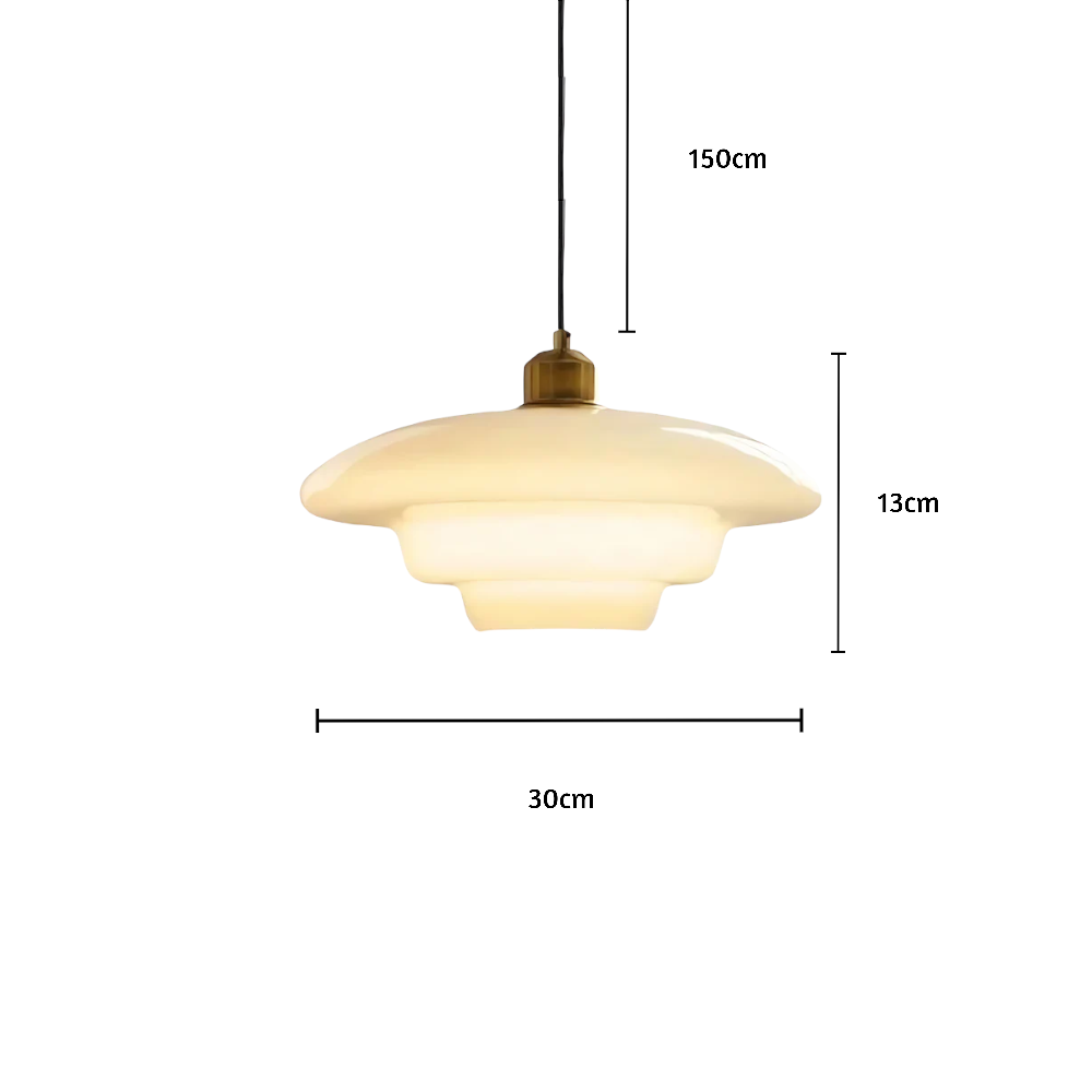 Bringen Sie zeitlose Eleganz in Ihren Raum mit "Le Nuage Lumineux", einer atemberaubenden Pendelleuchte, die vom Art Deco Design inspiriert ist. Gefertigt aus milchweißem Glas mit einer geschichteten Silhouette und einem Messingakzent, strahlt diese Lampe Raffinesse und Wärme aus. Ihr weiches, diffuses Licht schafft eine gemütliche und einladende Atmosphäre, die sich perfekt für Wohn-, Ess- und Schlafzimmer eignet. Diese vielseitige Leuchte, die auf Langlebigkeit und einfache Installation ausgelegt ist, passt zu einer Vielzahl von Einrichtungsstilen, von modern bis klassisch. Verleihen Sie Ihrem Zuhause einen Hauch von Raffinesse mit diesem leuchtenden Mittelstück.