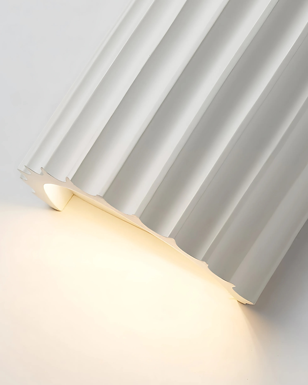 Verleihen Sie Ihrem Raum einen Hauch von Eleganz und von der Natur inspiriertem Charme mit L'Éclat Verdoyant, einer modernen Wandleuchte, die mit ihrer einzigartigen Struktur und ihrem sanften Licht jeden Raum aufwertet. Ihr geripptes, zylindrisches Design in einem beruhigenden Grünton schafft ein auffälliges visuelles Element und streut das Licht sowohl nach oben als auch nach unten.