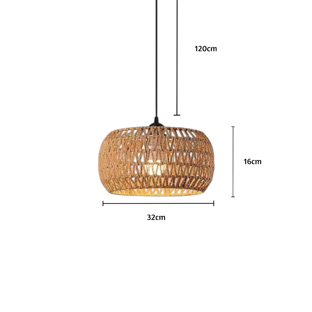 Erhellen Sie Ihren Raum mit L'Oréa, einer atemberaubenden Pendelleuchte, die handwerkliche Kunstfertigkeit mit organischem Charme verbindet. Die aus Naturfasern handgewebte Leuchte wirft mit ihrem filigranen Gitterdesign faszinierende Schatten und schafft ein warmes und einladendes Ambiente.