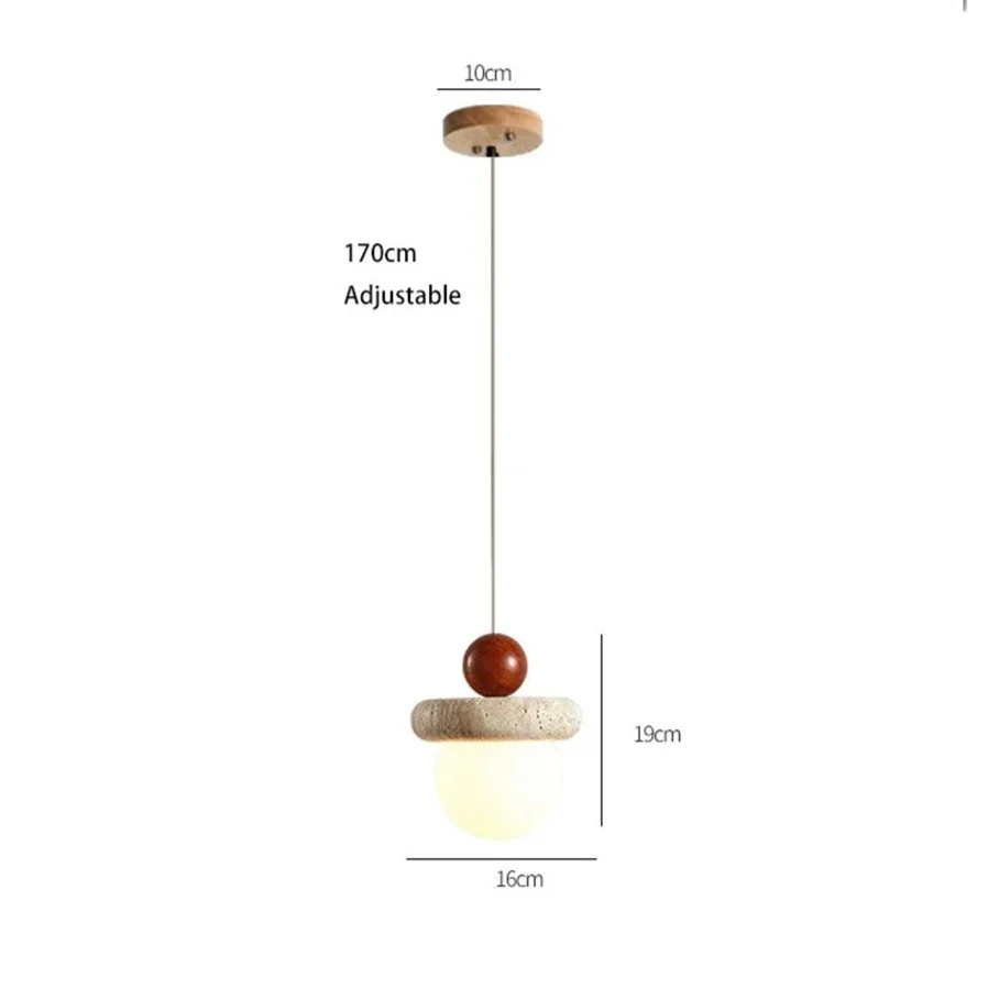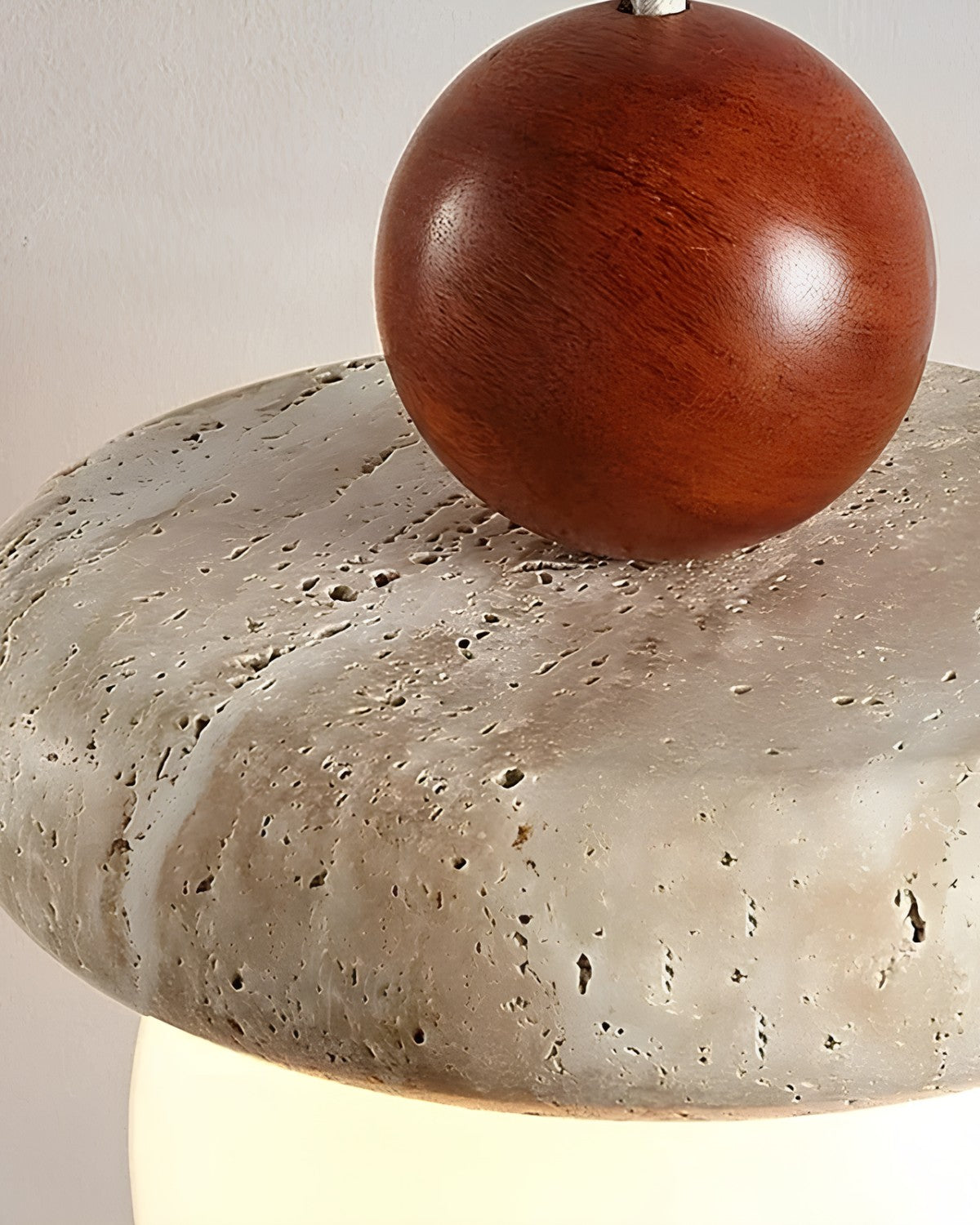 Μενταγιόν από τραβερτίνη και ξύλο - Γλυπτό μοντέρνο φωτιστικό με ζεστή λάμψη για τραπεζαρία ή καθιστικό