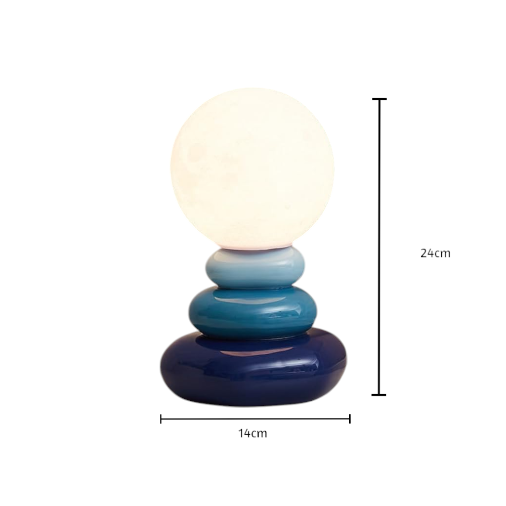 Inspired by the harmony of nature and the serenity of moonlit waters, L'Azuréa is a statement of refined artistry. This exquisite table lamp features a sculptural base of smooth, stacked ceramic stones in gradient shades of deep navy to soft azure, reminiscent of ocean pebbles polished by time.