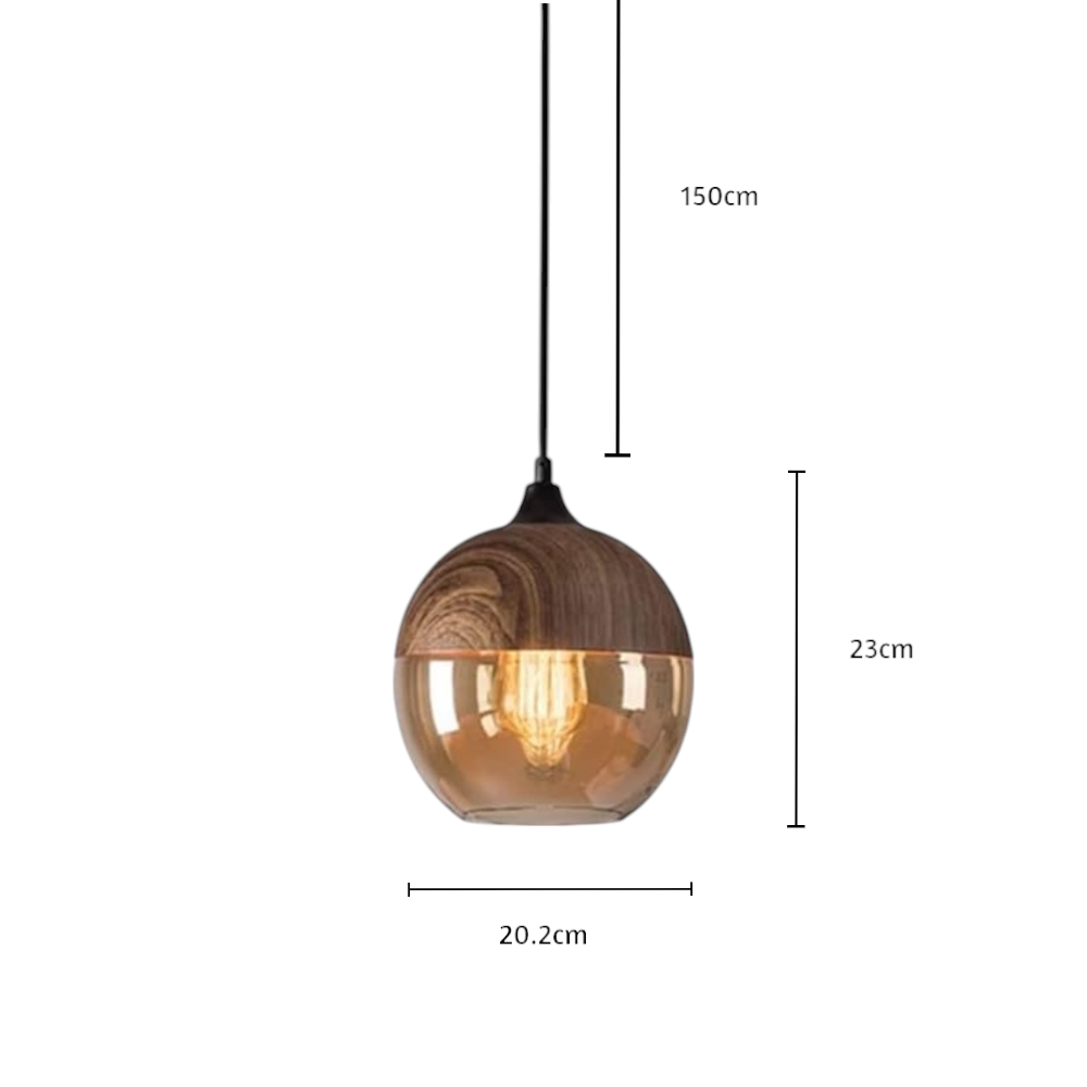 Elegant Wooden Pendant Light | Warm Glass & Iron Design for Modern Interiors