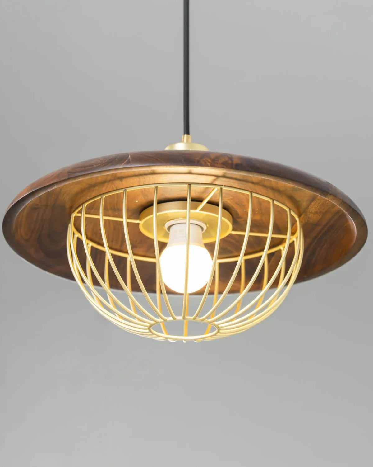 Modern Pendant Lamp with Natural Wood and Gold Accents