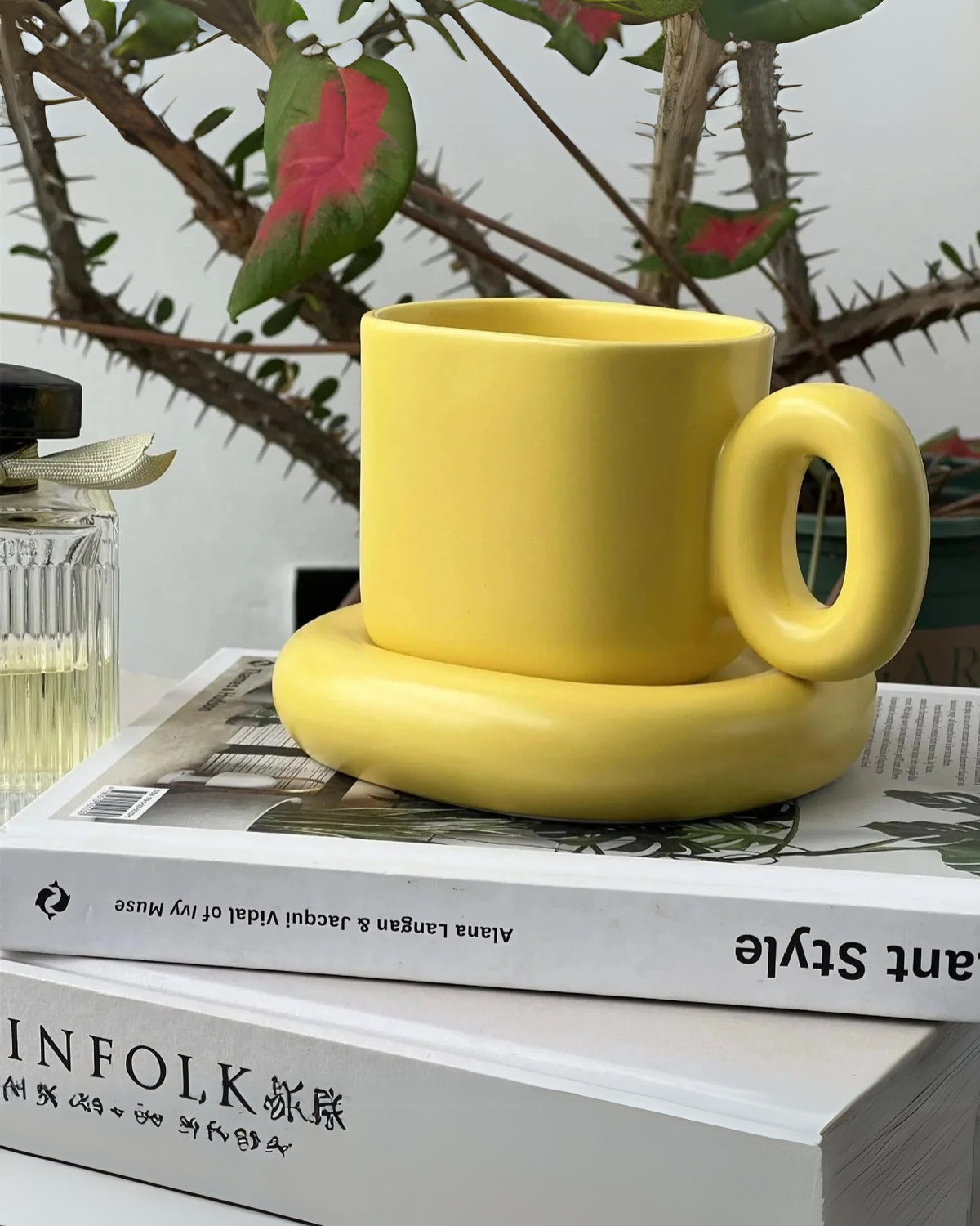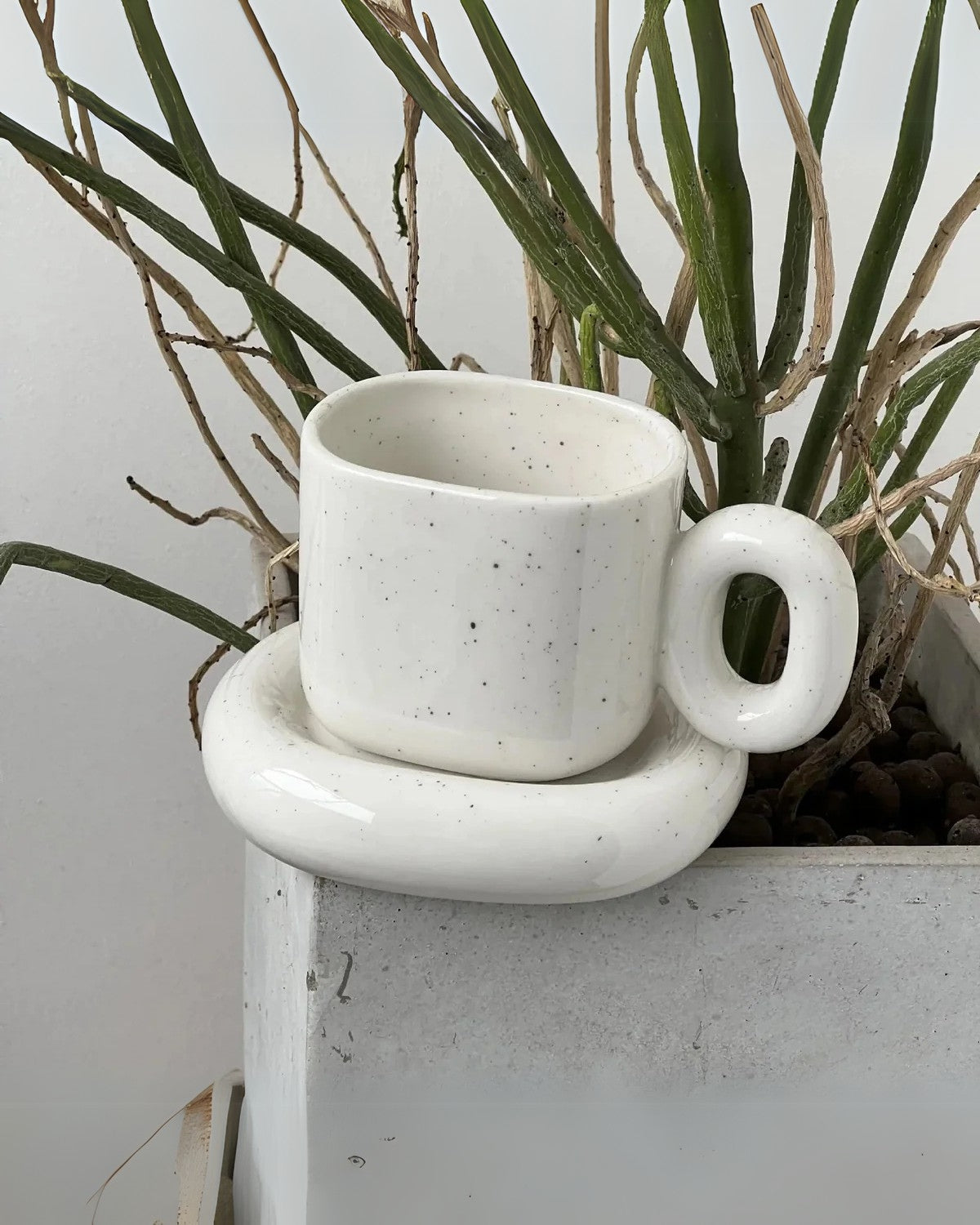 Experience the perfect fusion of contemporary design and artisanal craftsmanship with Le Délicat. This exquisite ceramic cup and saucer set captivates with its organic curves, sculptural handle, and fluid aesthetic, making it a true statement piece in any refined setting.