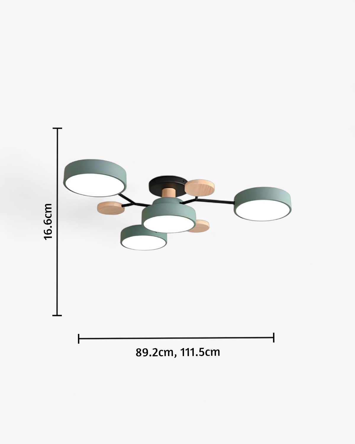 Le Canopée is a sculptural ceiling light inspired by the layered beauty of forest canopies. Combining minimalist lines with warm wooden accents, it reflects the harmony of Japandi and Nordic design. Finished in muted green with natural wood tones, it creates soft, ambient LED lighting, perfect for living rooms, bedrooms, or lounges. Whether as a statement piece or an understated addition, Le Canopée brings natural elegance and style to any space.