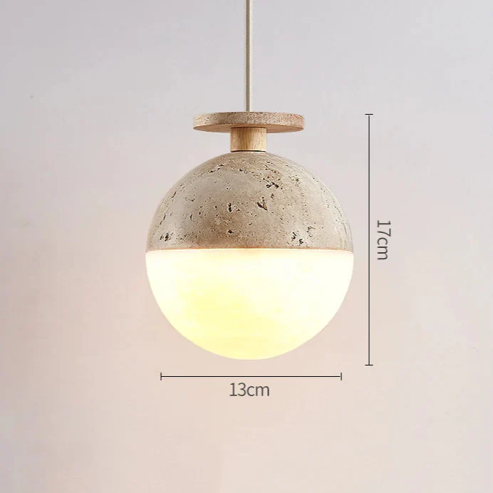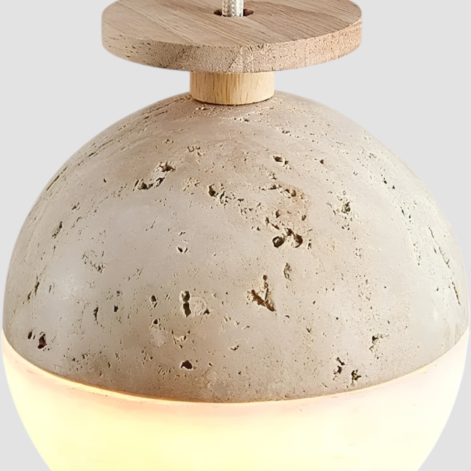 Natural Travertine Stone Pendant Lamp with Soft Globe Illumination