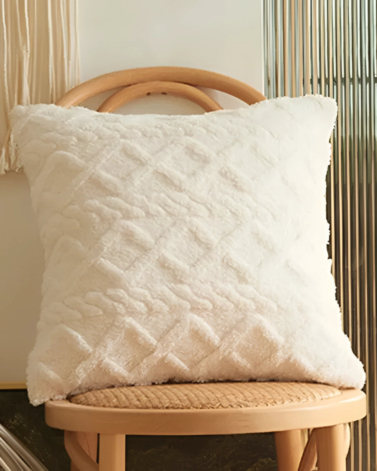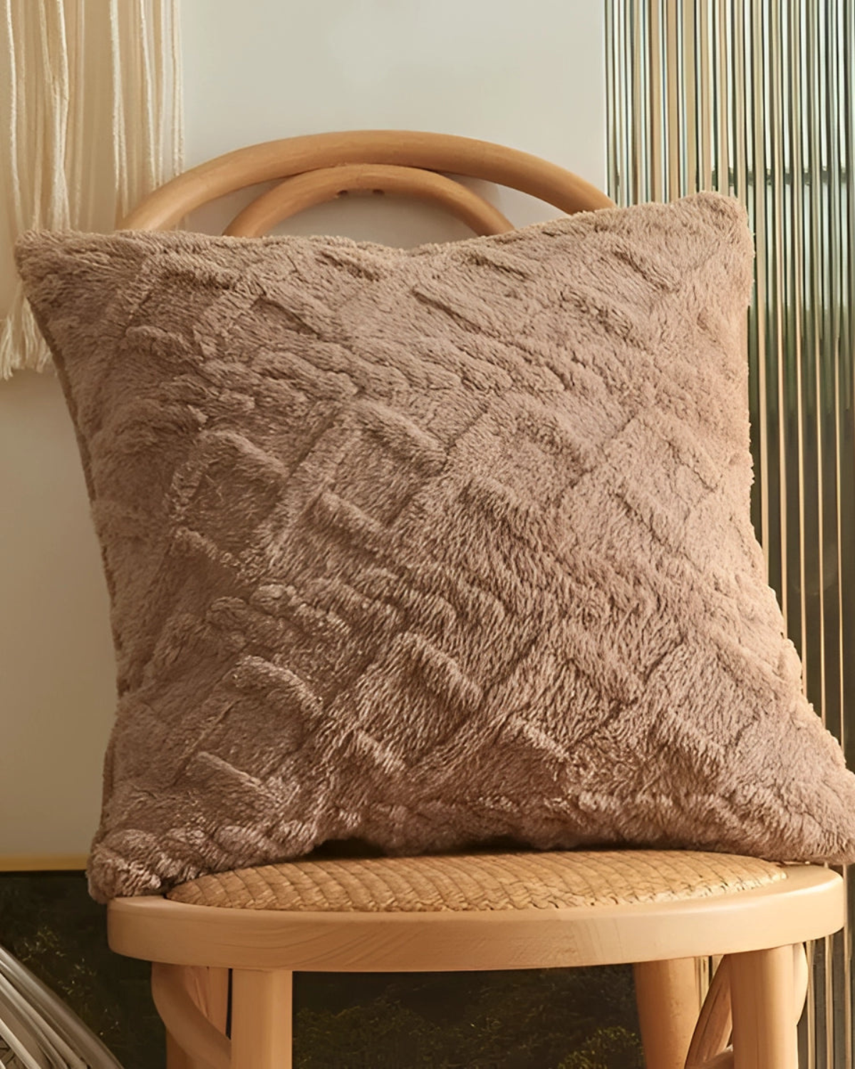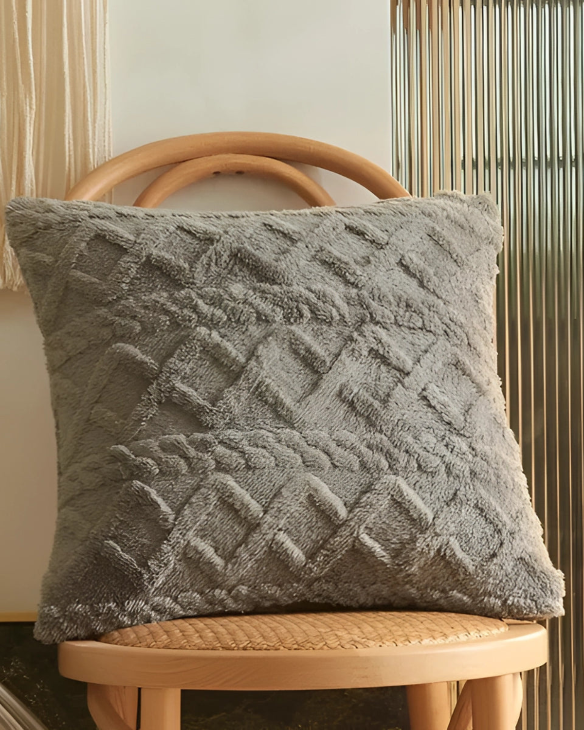Elevate your living space with the Relief Cushion, where softness meets sophistication. Designed with a plush, high-pile fabric, this cushion features an intricate raised pattern that adds depth and dimension to any setting. The subtle geometric relief creates a tactile experience, blending seamlessly with Japandi aesthetics and modern interiors.