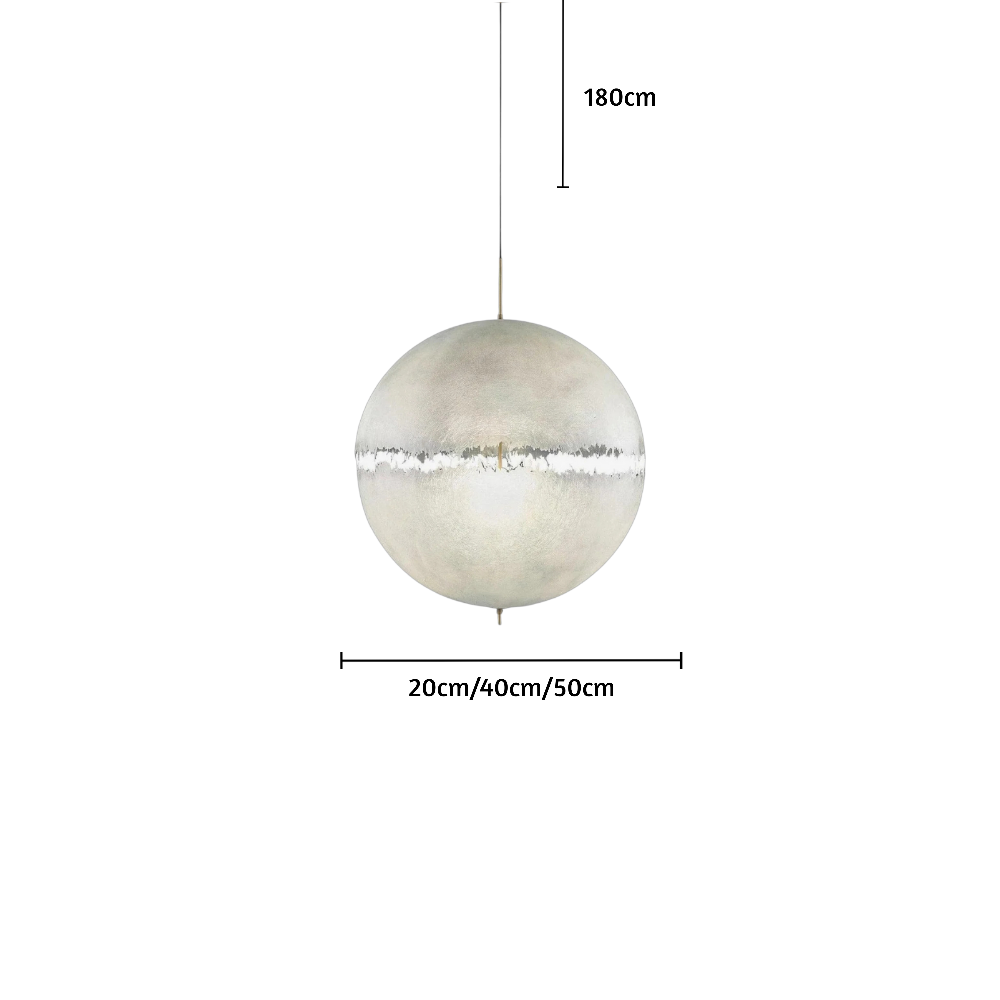 A large spherical diffuser creates a bold visual centerpiece. Its softened radiance recalls celestial forms and adds depth to open rooms. Perfect for foyers, dining areas, or high-ceiling spaces.