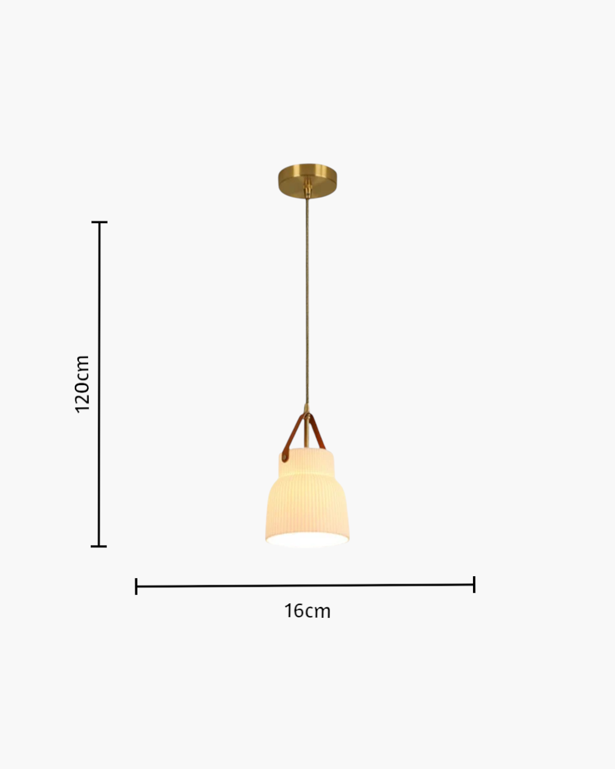 Elegant Design: A minimalist ribbed ceramic shade combined with warm leather straps and brass detailing, exuding refined sophistication.