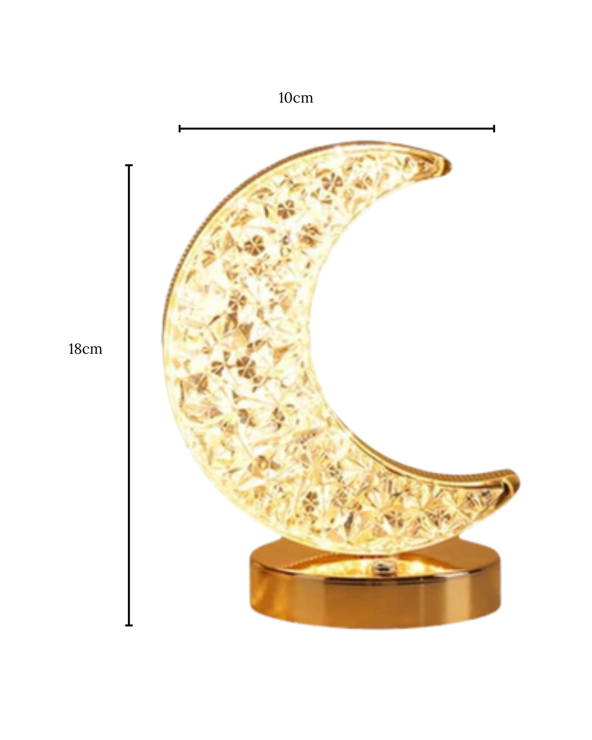 Immerse your space in the enchanting radiance of L'Éclat Lunaire, a luxurious crescent-shaped table lamp that captures the mystique of moonlight. Designed with exquisite crystal detailing and a golden base, this lamp refracts light beautifully, creating a mesmerizing interplay of brilliance and shadow.
