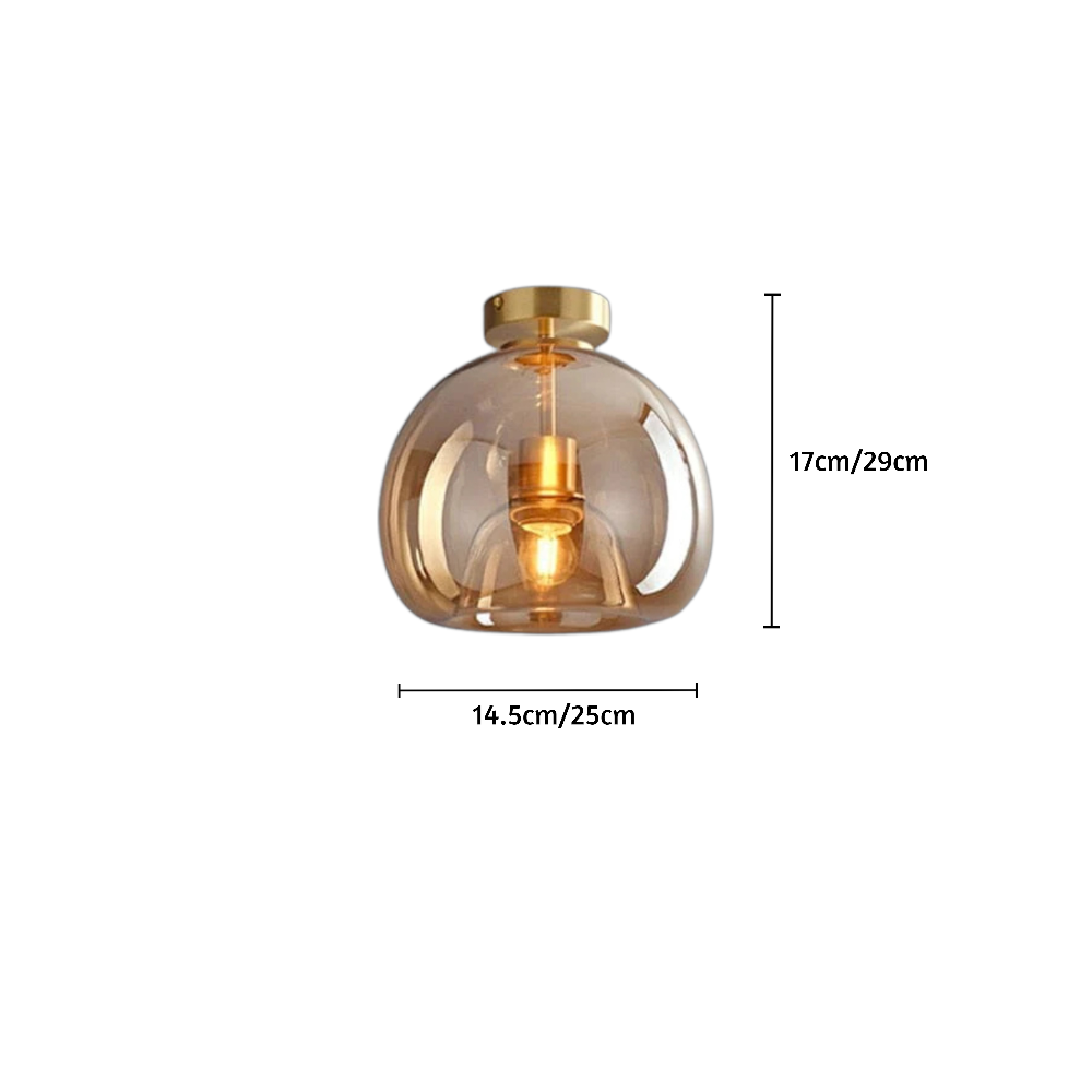 This glass ceiling lamp features a refined silhouette that highlights the purity and clarity of its material. The smooth glass form softly diffuses light, creating a warm and balanced glow. Elegant and timeless, it adds a subtle sense of sophistication to both modern and classic interiors.
