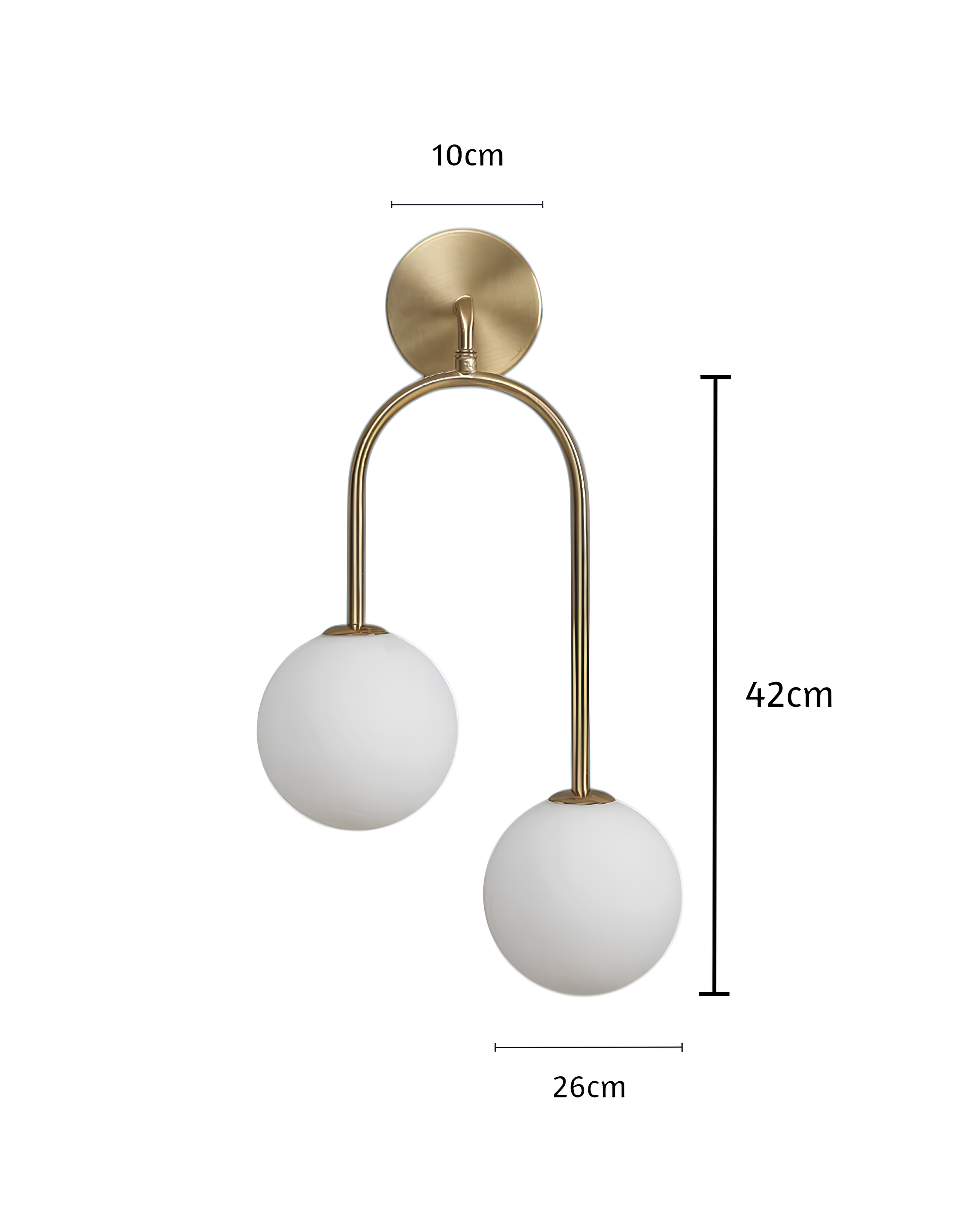 Dubbel Globe vägglampa i borstat guld och opalglas