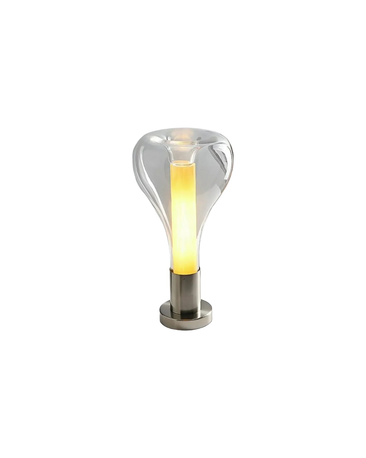 This sculptural table lamp captures the fluid movement of molten lava, transforming light into living art. A softly glowing core diffuses warmth through an organic form, creating depth and visual intrigue. Designed as both illumination and statement, it brings elemental elegance to refined interiors.