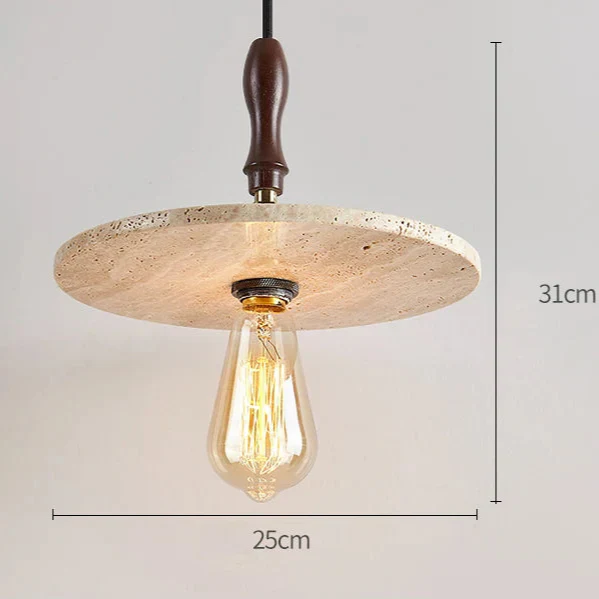 Taklampa i travertin och trä med exponerad glödlampa - modern taklampa för kök eller matsal