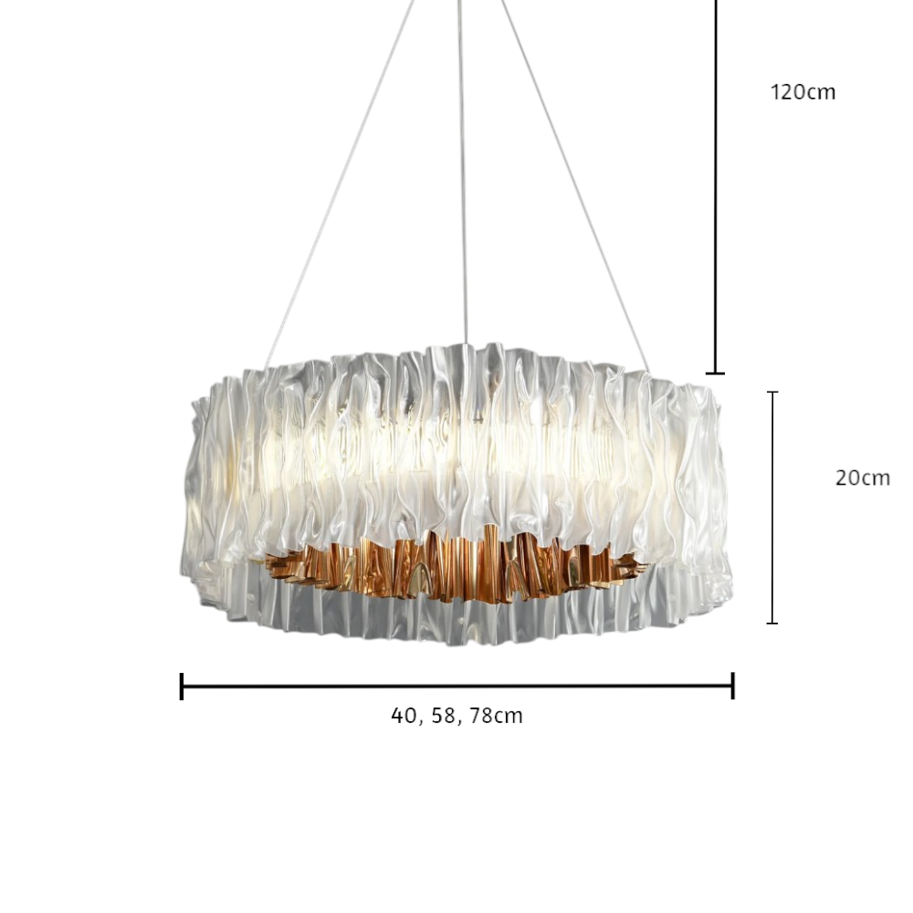 Förhöj din interiör med Le Flouiren pendellampa som blandar konstnärlig form med förfinad atmosfär. Inspirerad av silkets fluiditet och elegansen i mjuka veck, framkallar dess design ett känsligt samspel mellan skugga och ljus. Den metalliska, ruffiga strukturen fångar ögat från alla vinklar, medan det varma skenet strålar genom den skulpterade formen och skapar en lugn men ändå slående atmosfär.